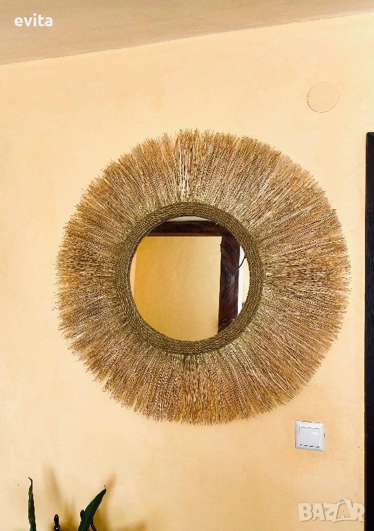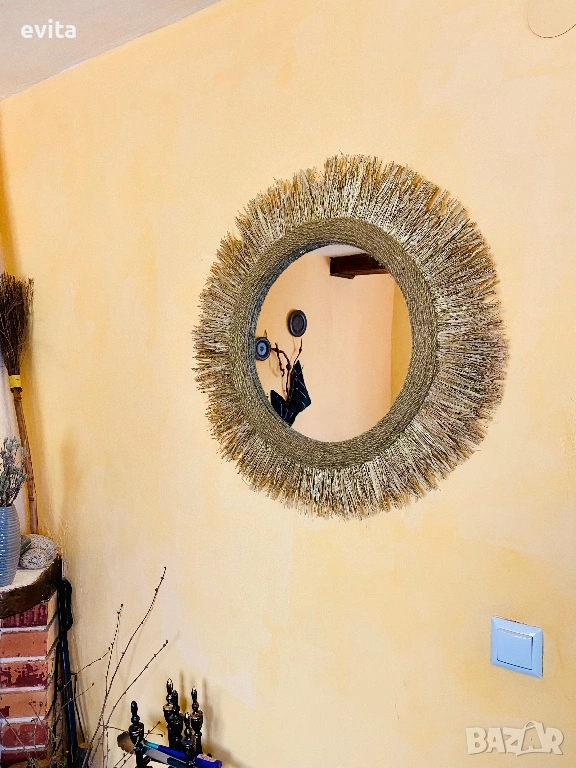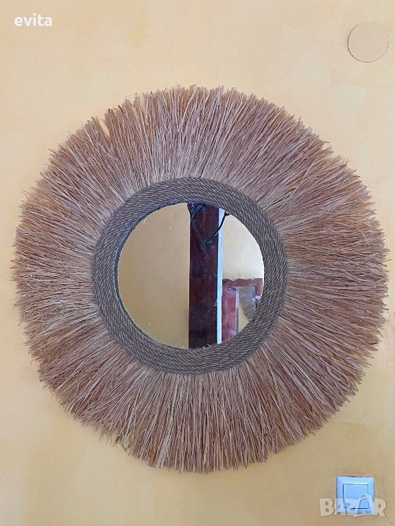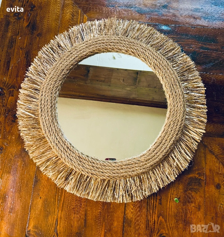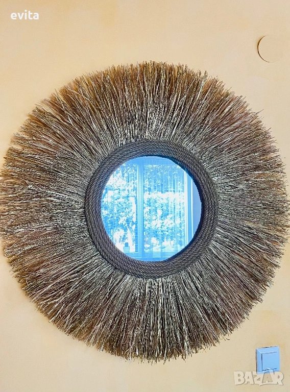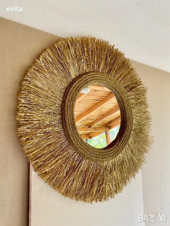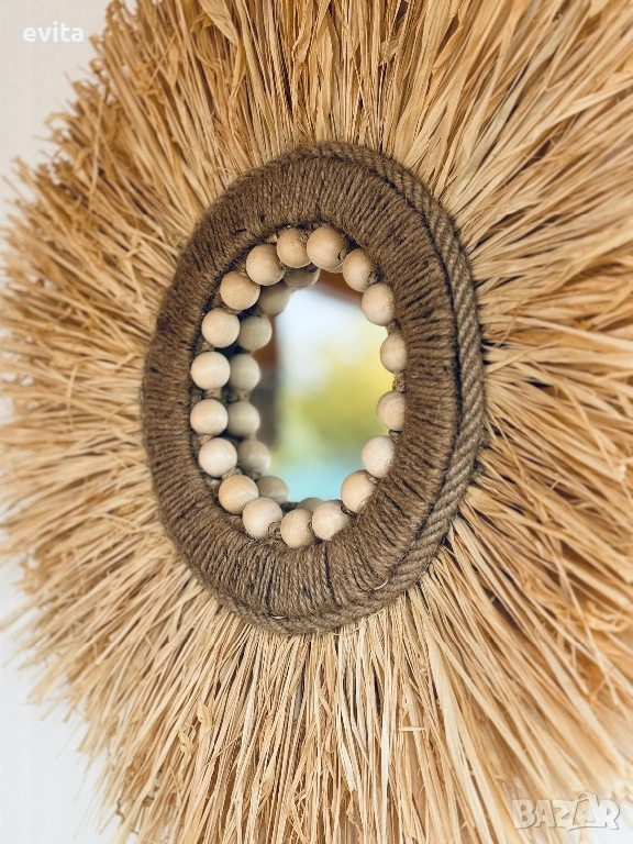 🌿Дизайнерско огледало от рафия – ръчно изработен бохо акцент за уютен и модерен дом