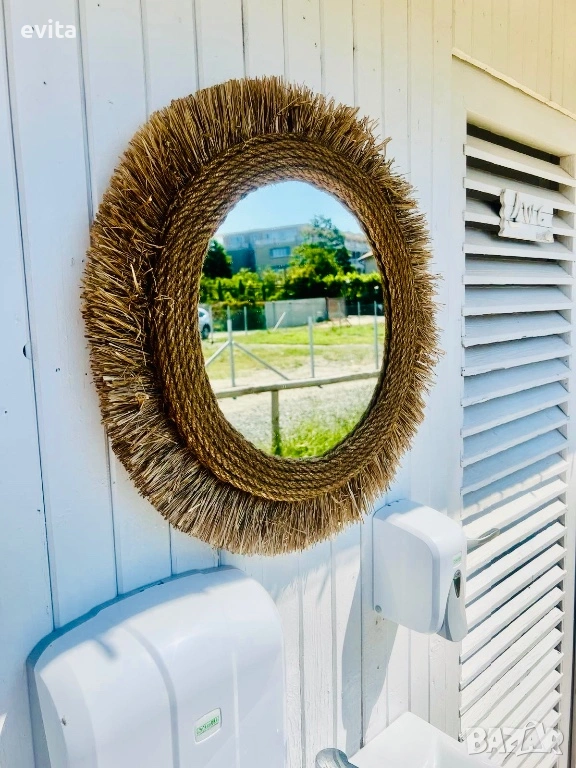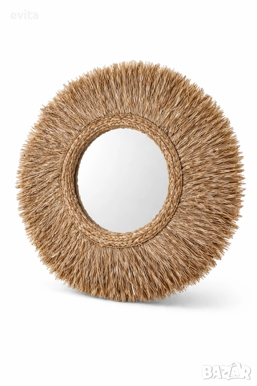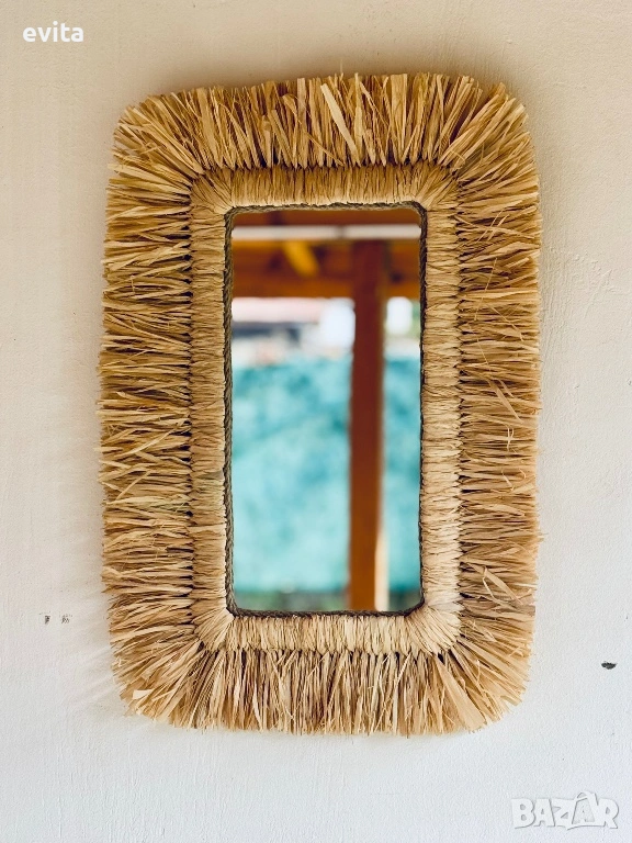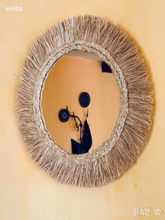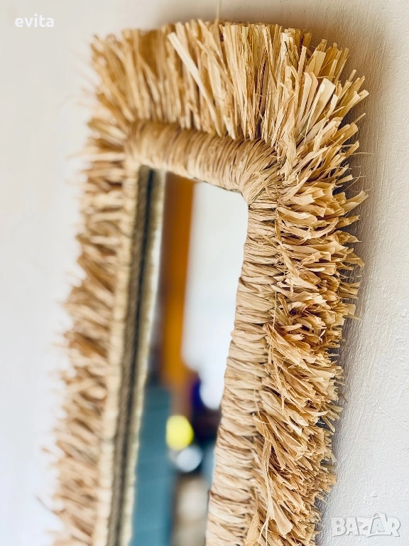 Това огледало не е просто функционален елемент – то е акцент, който придава характер и настроение на пространството. Създадено с внимание към естествената естетика, рамката от рафия внася топлина, мекота и артистично излъчване във всеки дом.