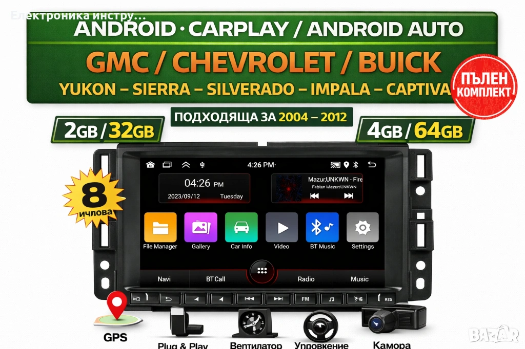 Подходяща е както за SUV и пикапи (Yukon, Sierra, Silverado), така и за леки модели (Impala, Captiva, Aveo и др.). Отличен избор за клиенти, които искат по-голям екран и по-съвременен интериор.