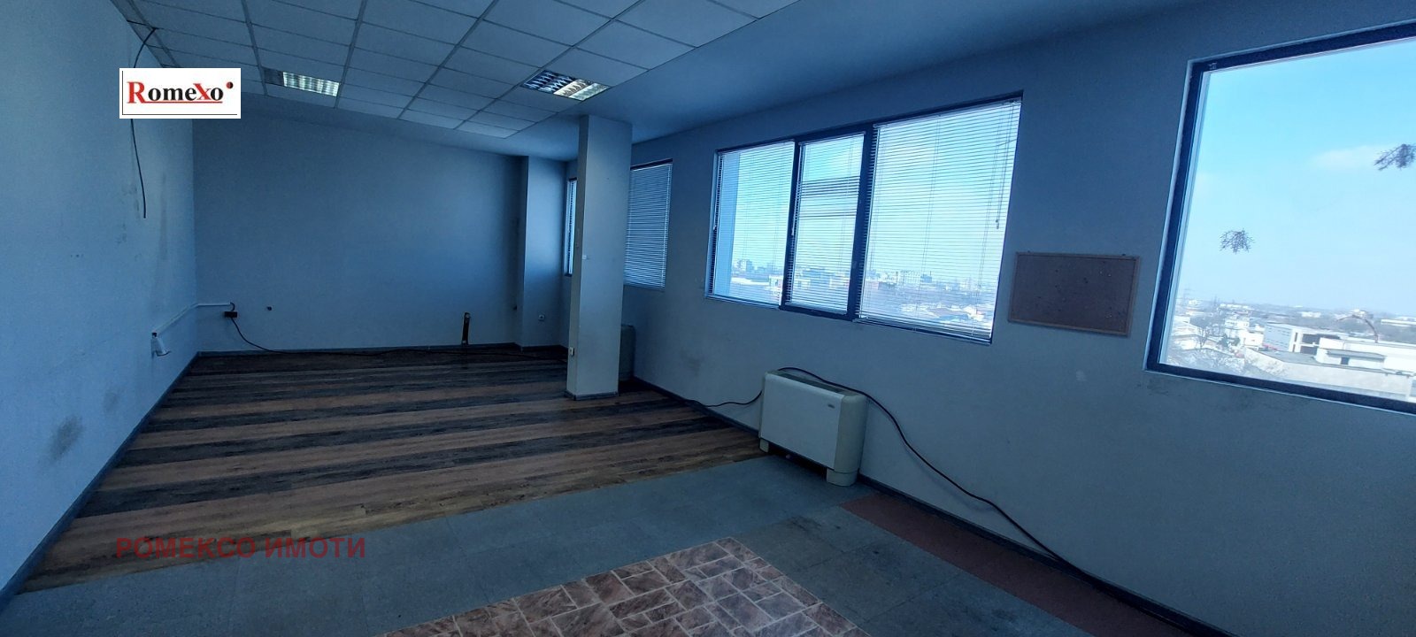 Самостоятелен етаж с няколко помещения, пет тоалетни, два пътнически асансьора и един товарен. Може да се ползва за офиси, склад и/или производство. Ползва се и паркинг.