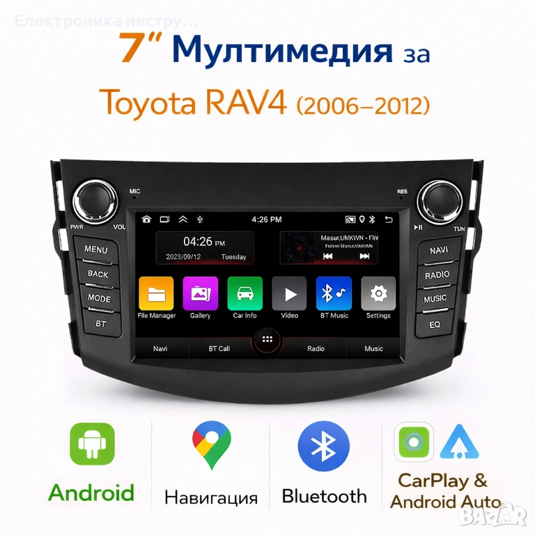 мултимедия за тойота рав4, мултимедия toyota rav4, навигация за тойота рав4, навигация toyota rav4, android мултимедия rav4, android multimedia rav4, 7 инча мултимедия, 7 inch multimedia, toyota rav4 2006 2012, рав4 2006 2012, carplay toyota rav4, android auto rav4, bluetooth мултимедия, gps навигация кола, управление от волана, plug and play мултимедия, авто мултимедия toyota, автомобилна навигация toyota