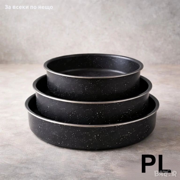 Комплектът включва 3 дълбоки емайлирани тави Voltz, идеални за печене на торти, баници, месо, зеленчуци, лазаня, сладкиши и много други ястия.