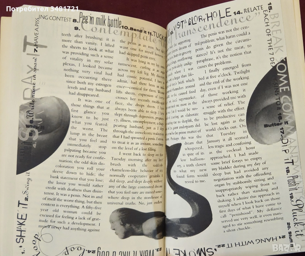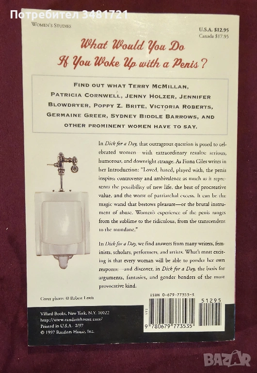От Тери Макмилан до Дженифър Блоудрайър, от Патриша Корнуел до Линда Секстън Грей, всички те дават в книгата своите отговори - хигиенични, еротични, метафизични и дори духовни. В текст и илюстрации, някои ще споделят мечти, тревоги и въпроси, които винаги са ги интригували. Други директно ще заявят: "Ако бях мъж за един ден, първата ми работа е да опикая цялата баня, от пода и тоалетната чиния до стените, след което да накарам четиримата ми братя да я изчистят. Така, както аз винаги се налагаше някога да чистя след тях!"