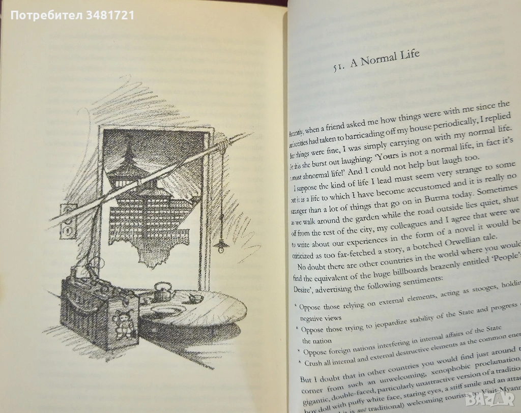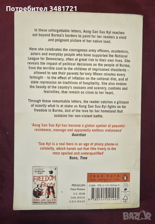 Авторът Аун Сан Су Чжи е лидер на Националната лига за демокрация в Бирма. Тя е поставена под домашен арест в Рангун през 1989та година, където остава почти 15 от 21-те години до освобождаването си през 2010, превръщайки се в един от най-известните политически затворници в света. Тя е и автор на сборника с писания „Свобода от страх“.