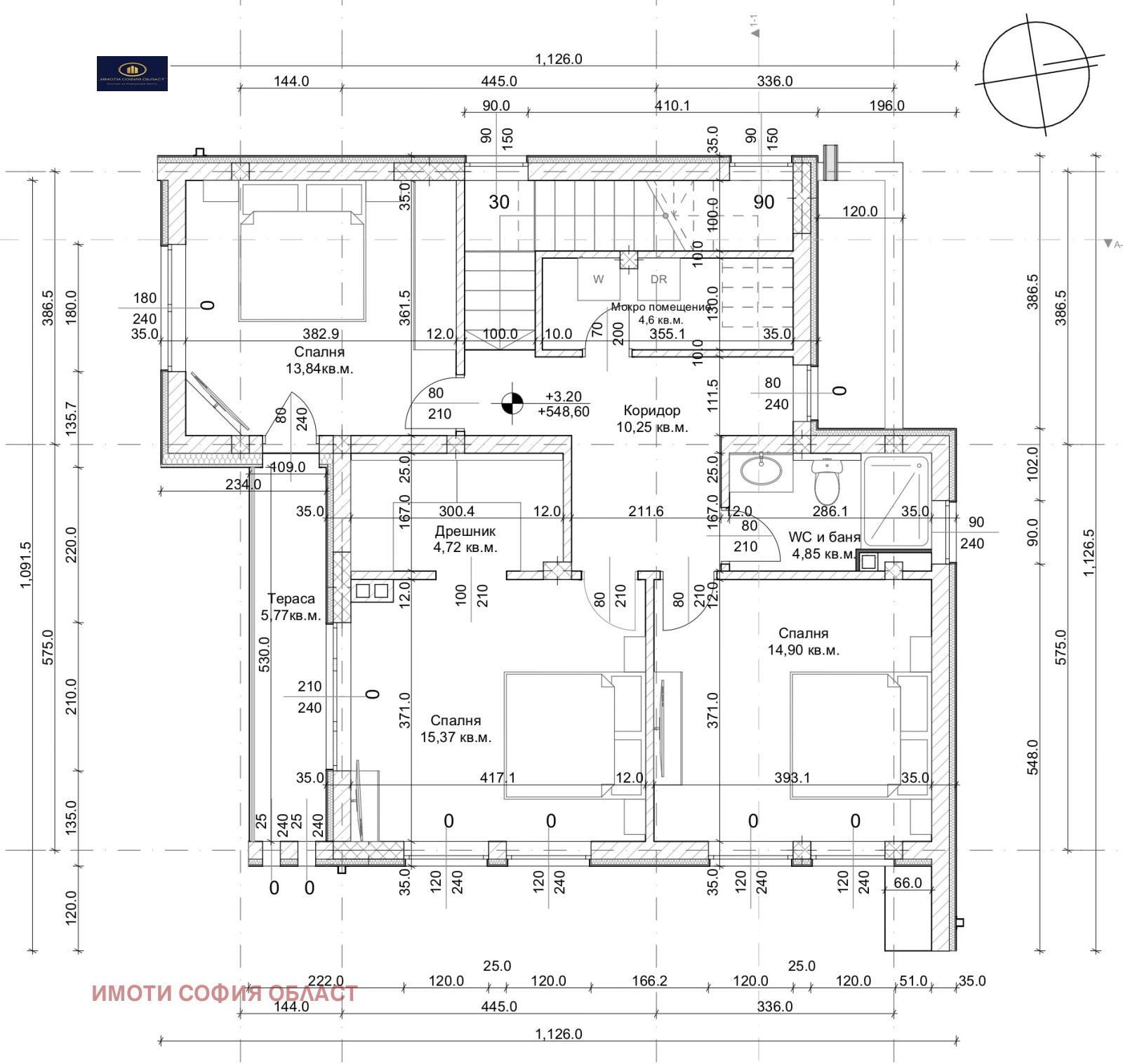 - 1ви етаж-83кв.м.: входно антре, дневна-кухня-трапезария с излаз към веранда, спалня, баня с тоалетна, техническо помещение /мокро/, височина на таваните 2,8м.