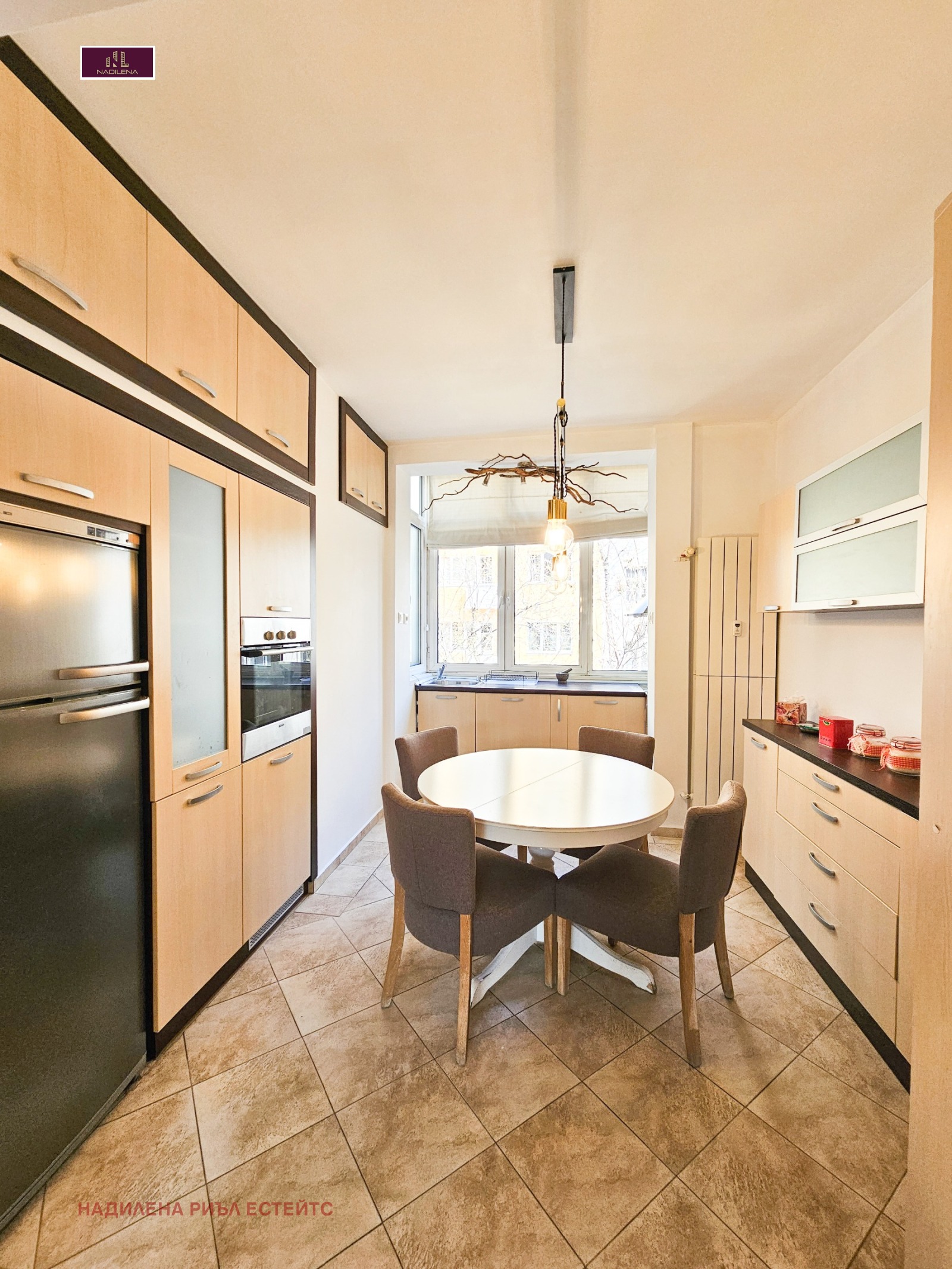 Входът е поддържан, с контролиран достъп. Намира се на изключително тихо място, в близост има много спирки на градски транспорт, държавни учреждения, офиси на банки, различни търговски обекти, аптеки, заведения, училища. Вътрешното разпределение е следното: антре с гардероб, шкаф за обувки, просторен хол с трапезария и оборудвана кухня с маркови електроуреди Bosch, като от хола се излиза на чудесен балкон. Отделно голяма спалня с двойно легло и гардероб, баня с тоалетна(душ кабина). За охлаждане и отопление в преходните сезони са поставени климатици.