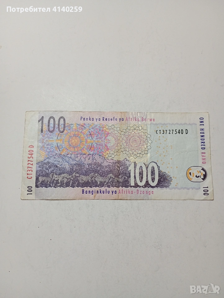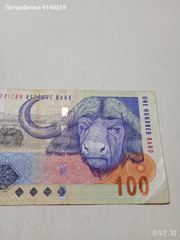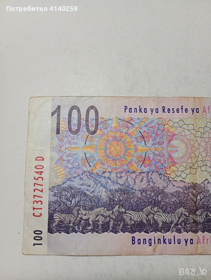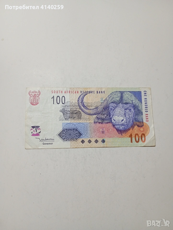 ЮЖНА АФРИКА БАНКНОТА 100 РАНДА 1992-2005 Г СЪСТОЯНИЕ ВИДИМО ПОЛУЧАВАТЕ СНИМАНАТА БАНКНОТА РАЗГЛЕДАЙТЕ ДРУГИТЕ МИ ОБЯВИ ДА КОМБИНИРАТЕ ДОСТАВКА ЕКОНТ ЗА ВАРНА ЛИЧНО