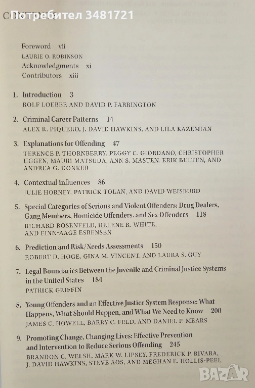 Включваща широка гама от професионалисти и редактирана от двама водещи авторитети в областта на психологията и криминологията, книгата разглежда защо периодът на преход е важен и как той може да бъде по-добре разбран и разгледан както в рамките на, така и извън системата на правосъдието. Събирайки над тридесет водещи учени от различни дисциплини както в Северна Америка, така и в Европа, книгата задава критични въпроси относно престъпните кариери и причинно-следствената връзка при тях, както и дали настоящите правни дефиниции за зряла възраст точно отразяват текущото съзряване и развитие. Анализ е направен и на настоящата ефикасност на съдебната система в справянето с младежката престъпност и рецидивизма, защо и как младежите трябва да бъдат третирани различно от възрастните, дали трябва да се установят специални законови разпоредби за младите хора и ефективността на програмите за превенция на престъпността, прилагани в ранното детство и юношеството.