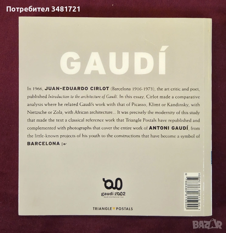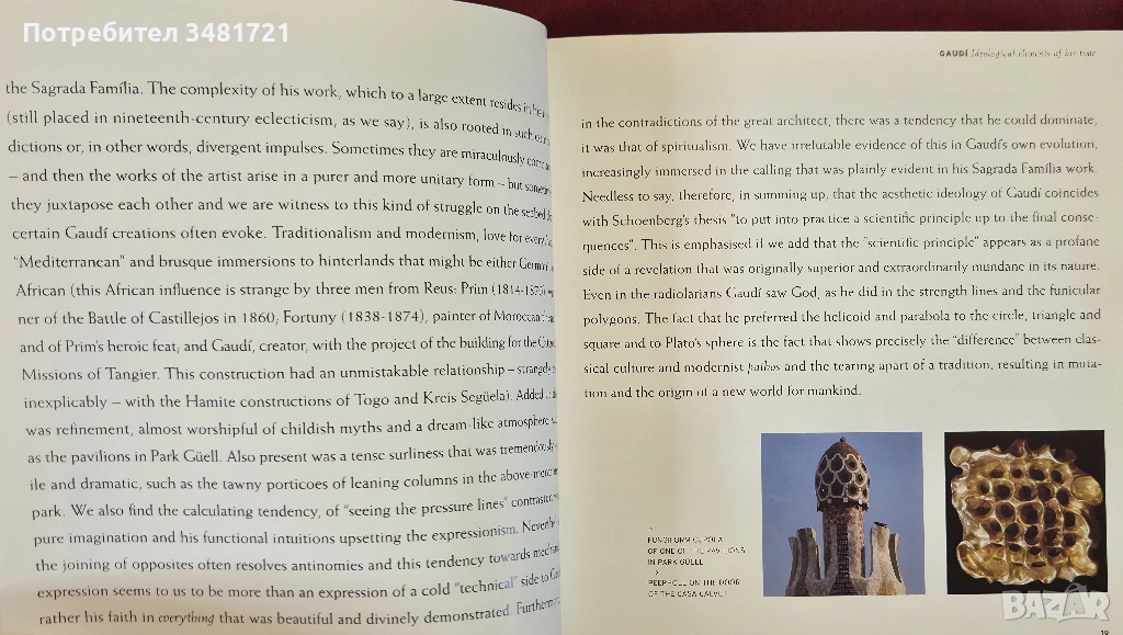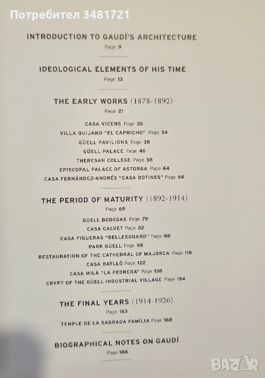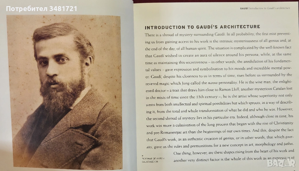 Илюстрирана антология на произведенията на Гауди, която включва кратка негова биография и представяне в текст и снимки на неговите архитектурни шедьоври, историята на създаването им, стиловете и техниките, както и други любопитни факти.
