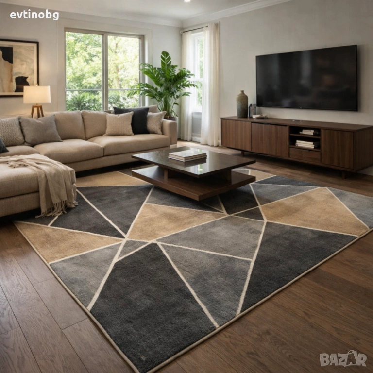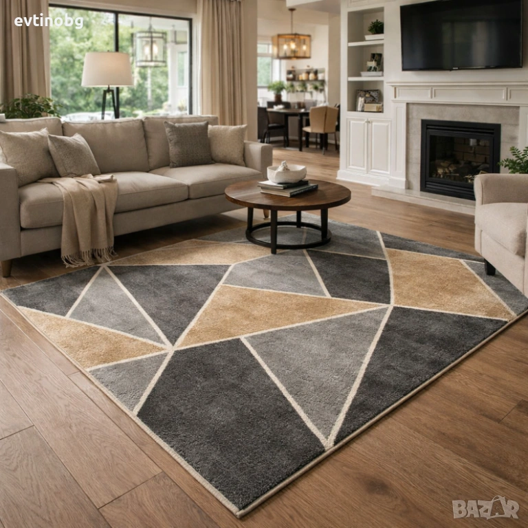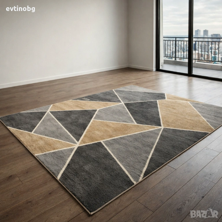Модерен Килим за Хол 120х160см – Стилни Геометрични фигури с 3D ефект, Противоплъзгащ и Миещ се