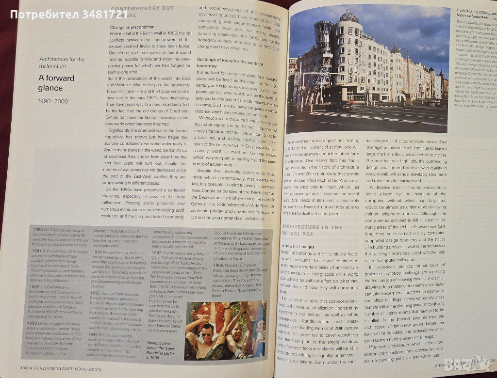 Кратка, визуално богата история на архитектурата, с която ще бъде запомнен миналият век. Хронологично подредена, тя представя в текст, снимки и илюстрации, различните стилове, които се развиват във времето, историческият и културен контекст, който ги оформя, заедно с най-известните им представители и архитектурни произведения.