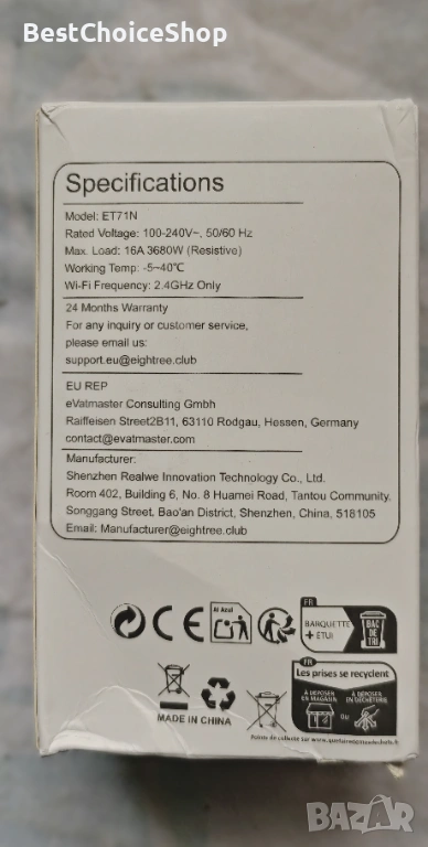 Гласово управление Този WiFi контакт е съвместим с Alexa, SmartThings и Google Home, така че можете лесно да управлявате контакта с гласова команда.