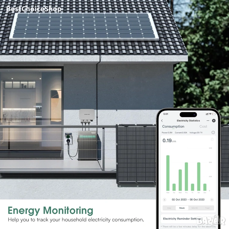 Контрол на консумацията на енергия: Wi-Fi контакт с измерване на тока ви позволява да следите подробно консумацията на енергия на вашите устройства. Така че знаете точно къде отива всяка стотинка от сметката ви за ток.