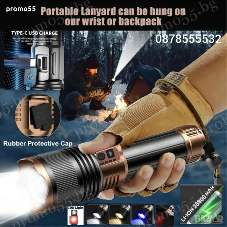Мощен фенер, подходящ за къмпинг, туризъм, лов, риболов, патрулиране, охрана, спешни случаи.