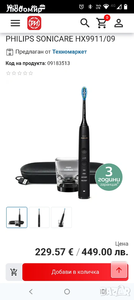 ЕЛЕКТРИЧЕСКА ЧЕТКА ЗА ЗЪБИ PHILIPS SONICARE HX9911/09