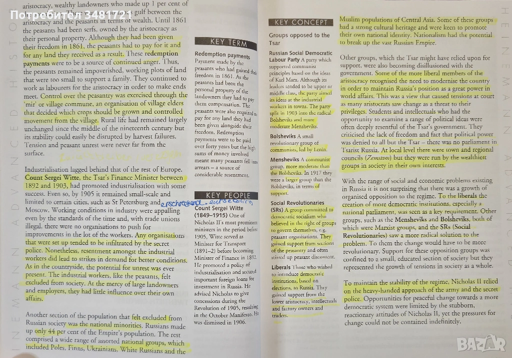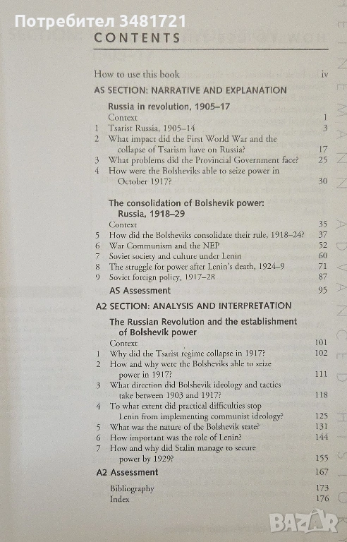 Книгата представя в текст, снимки, таблици и карти, хората и събитията, които предхождат и участват в руската революция в началото на миналия век. Тя е разделена на 3 части. Първата и втората разглеждат времето преди революцията, заедно с хората и събитията в самата революция. Главите са структурирани, за да дадат обща информация за хора, социални групи, вътрешни и външни за страната събития, но също така - да фокусират внимание на ключови елементи в историята чрез отделни панели на страниците. Самите глави са формирани като въпроси и отговори, като всяка завършва с допълнителни въпроси по темата.