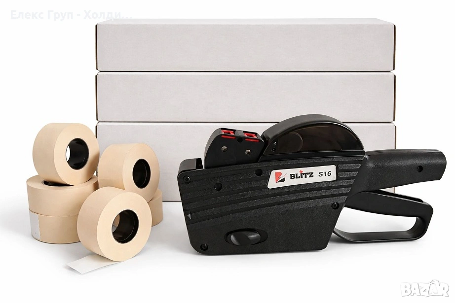 ПРОМО ПАКЕТ: BLITZ S16 + 126 ролки бели етикети 26×16мм