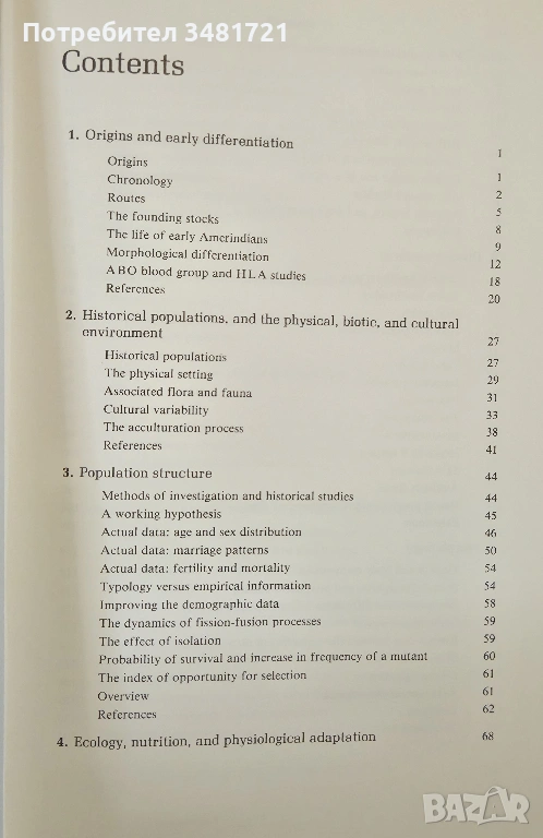 От гледна точка на човешката популационна биология, южноамериканските индианци представляват много интересен обект за изследване - както сами по себе си, така и като важен пример за човешката еволюция. В тази първа по рода си книга са събрани резултати, получени в изследвания на широк спектър от различни дисциплини. Акцентът е поставен върху анализа на генетичната вариабилност и еволюционните изводи, които могат да се направят. Една трета от книгата описва обширните данни за генната честота, налични за южноамериканските индиански популации, които са били подложени на подробен едно- и многовариантен анализ. Всяка глава започва с кратка оценка на областта на изследване, следва синтез на резултати от различни изследвания и исторически справки, подкрепени с много таблици с данни, като са включени и различни нерешени все още въпроси.