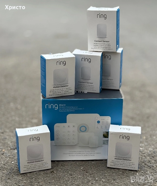 Предлагам Ring Alarm смарт система за сигурност, подходяща за апартамент, къща или офис. Това е модерна безжична алармена система, която позволява да наблюдавате и управлявате сигурността на дома си директно от телефона чрез приложението Ring. Комплектът включва централа (Base Station), клавиатура за управление, усилвател на сигнал и няколко сензора за движение и отваряне на врати/прозорци. Системата работи изцяло безжично и се монтира бързо и лесно, без нужда от специалист. Сензорите засичат движение в помещенията и отваряне на врати/прозорци, което прави системата идеална за пълна защита на имота. Без бартери!!!