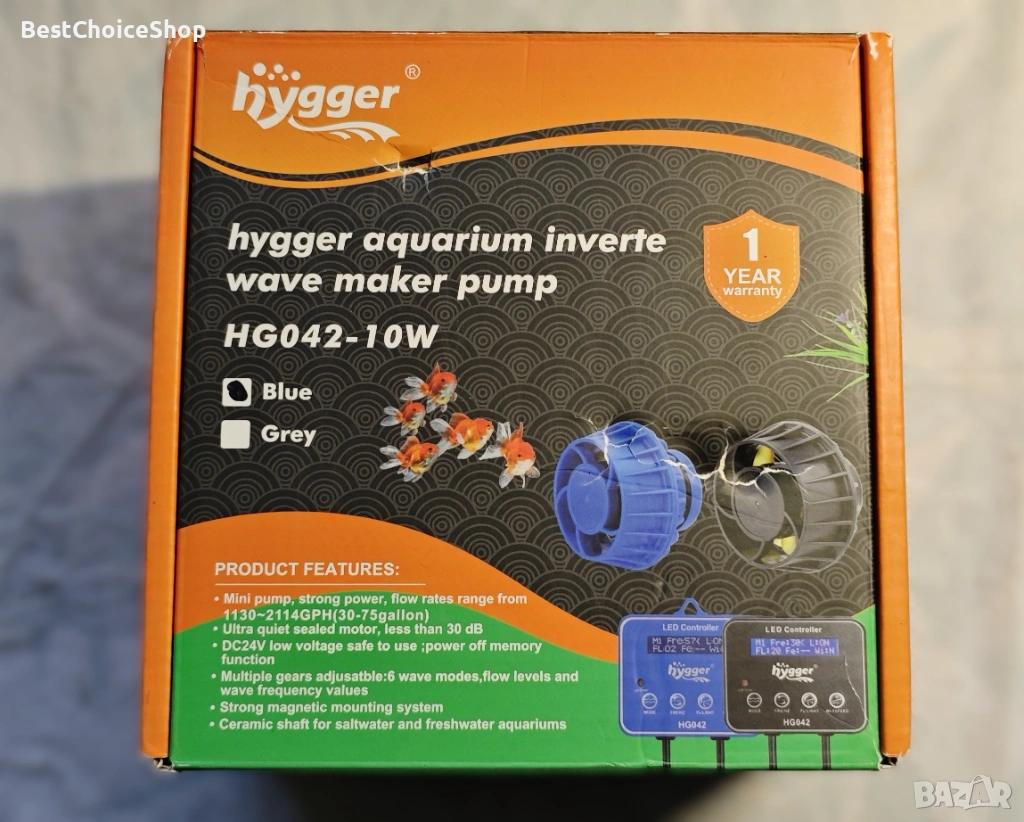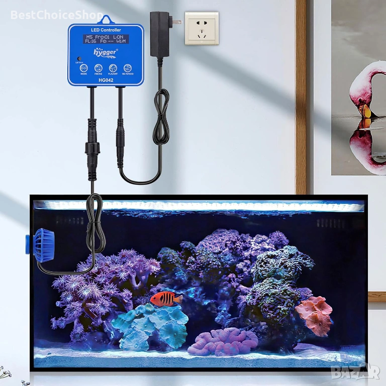 hygger 10V DC Вълногенератор за аквариум с контролер, 6 режима на вълните, регулируема скорост на водния поток 10W, сладководен, соленоводен, коралов, рифов, магнитен, захранващ блок, син