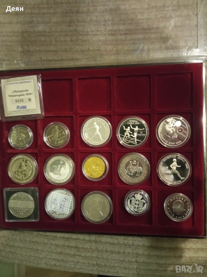 Здравейте юбилейни сребърни монети сеул, и други. Цената е за брой.Среброто в тях е на стойност от 50-70 евро .
