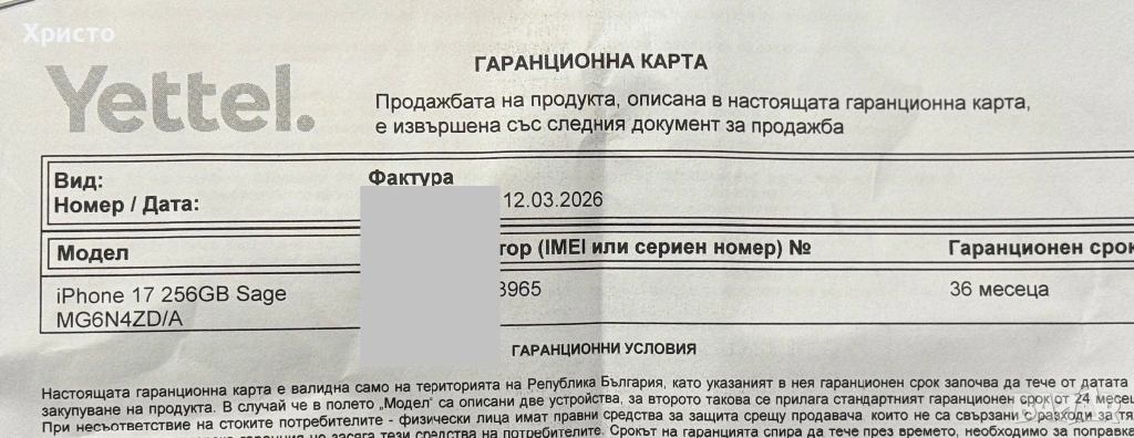 Предлагам Apple iPhone 17, 256GB – чисто нов, фабрично запечатан, неактивиран. Закупен на 12 Март 2026 г. с 36 месеца гаранция. Телефонът е напълно отключен и работи с всички оператори. В комплекта получавате гаранция, оригинален адаптер Apple (подарък). Без бартери!!!