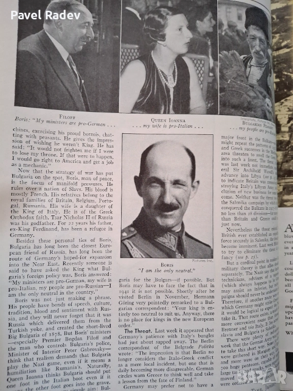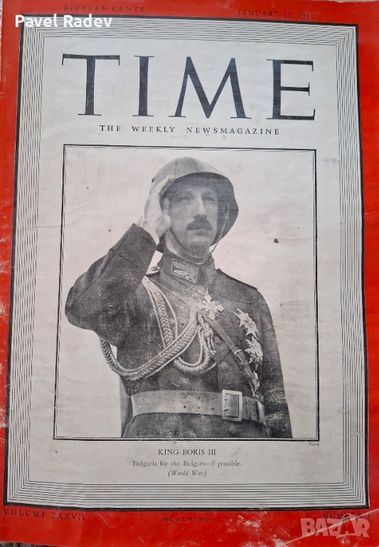 Предлагам оригинален брой на Time Magazine от 20 януари 1941 г., с Цар Борис III на корицата.