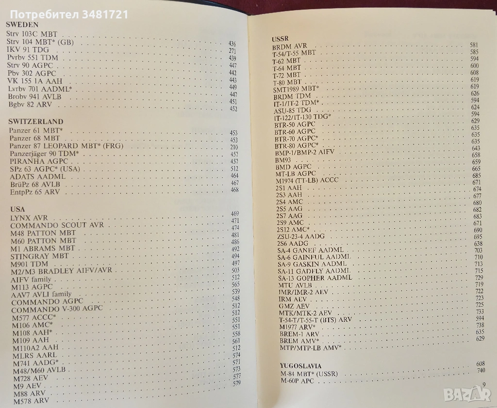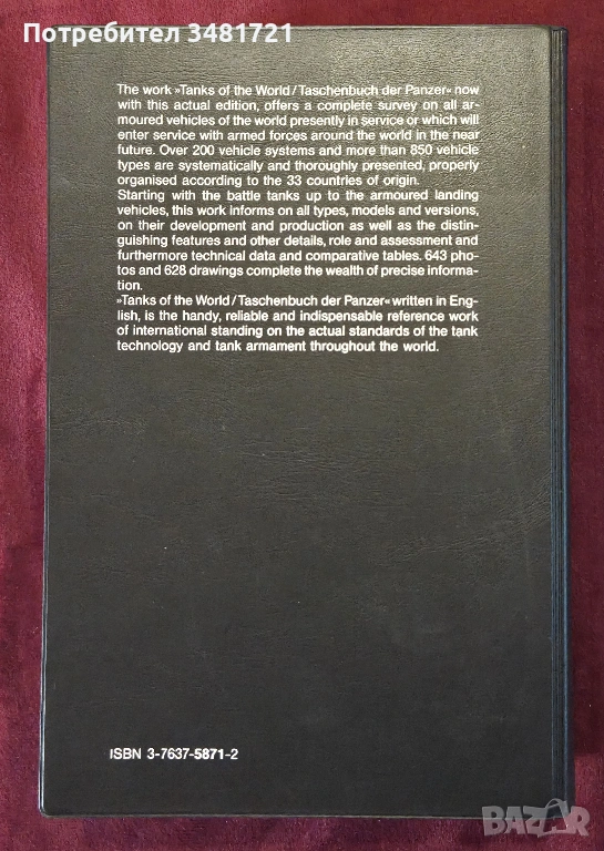 Еталонът за международен справочник на танкове по света. 643 снимки, 628 скици и илюстрации, история, технически параметри, разновидности на отделните модели, начин на водене на военни действия и т.н.