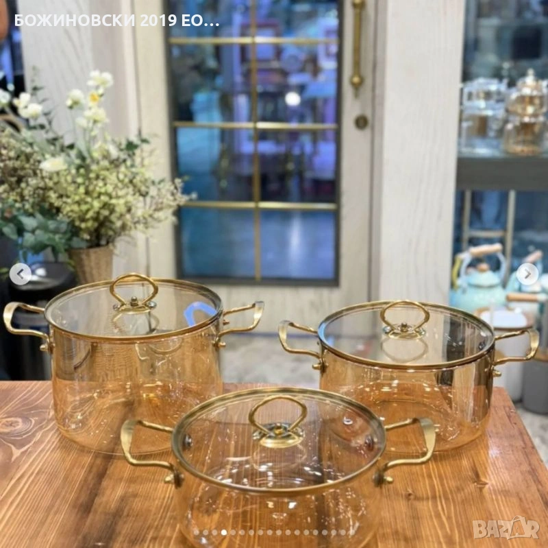 Кехлибарена стъклена тенджера 2,5 л със златни дръжки