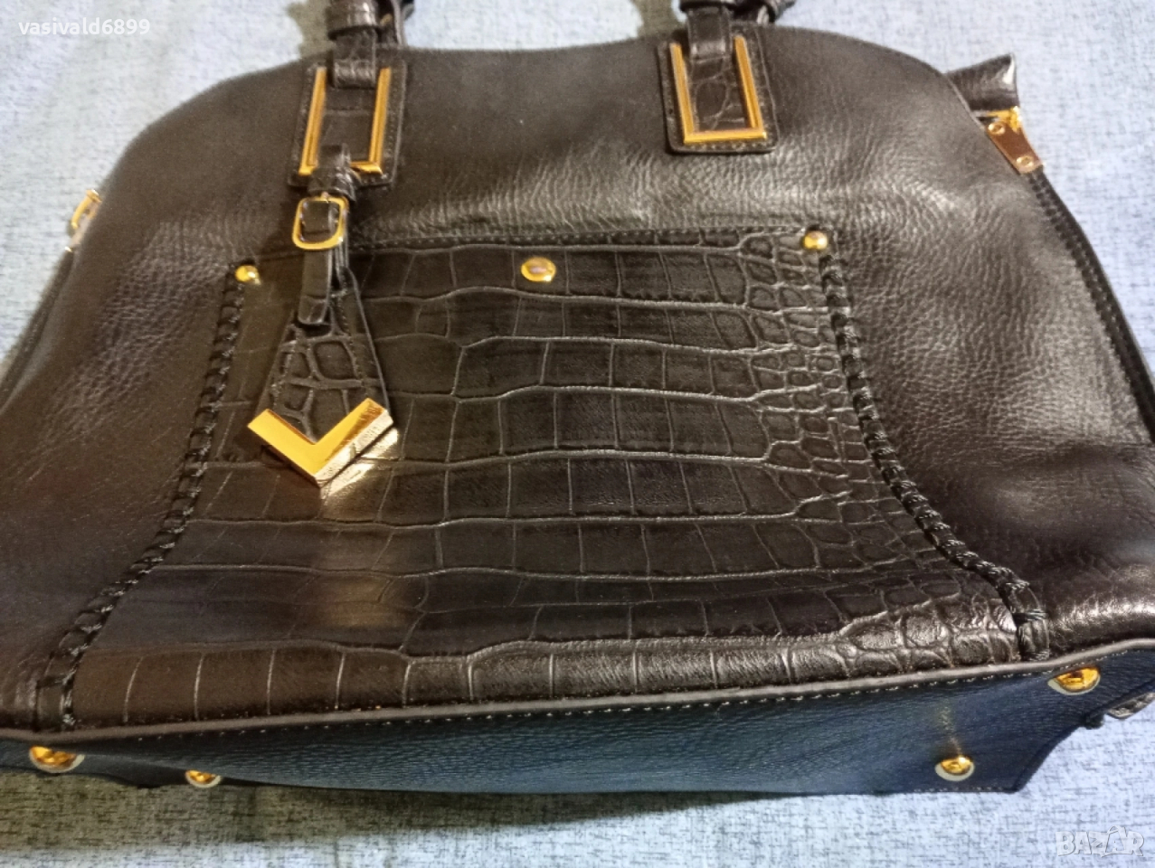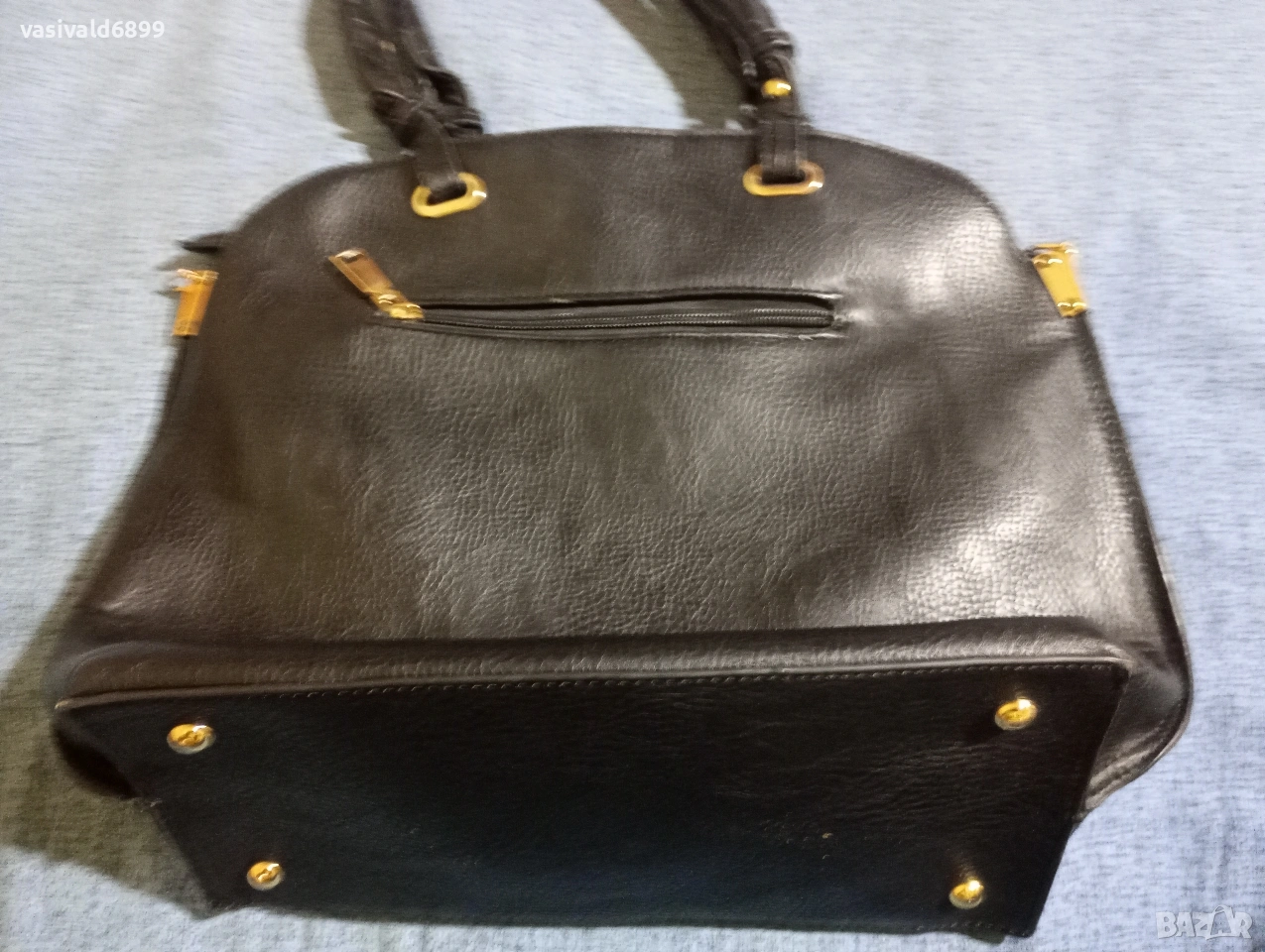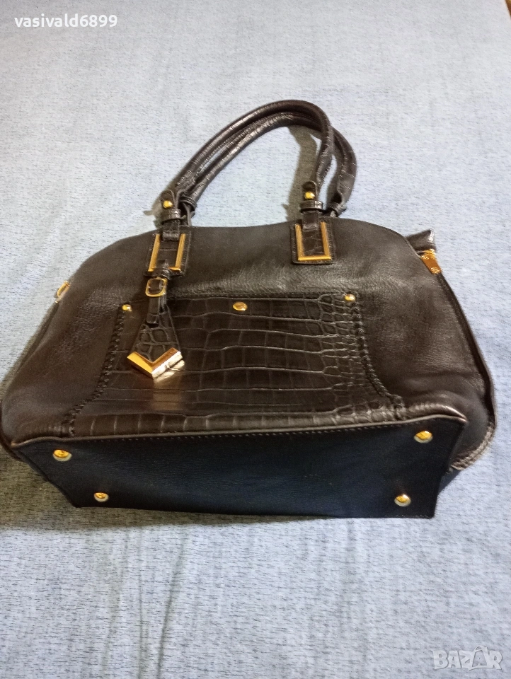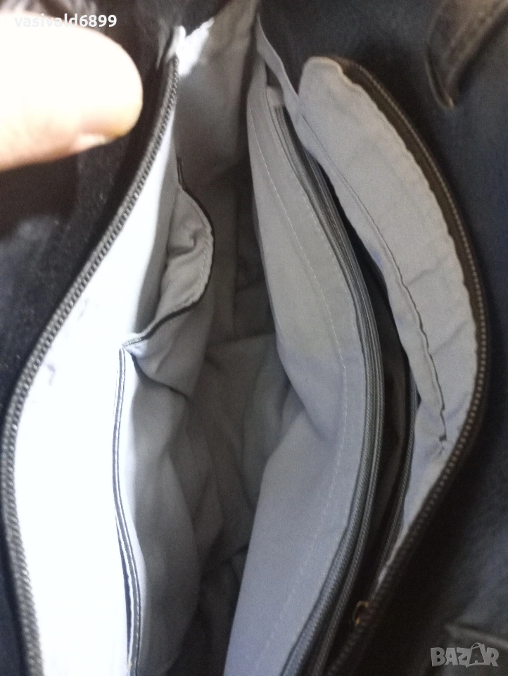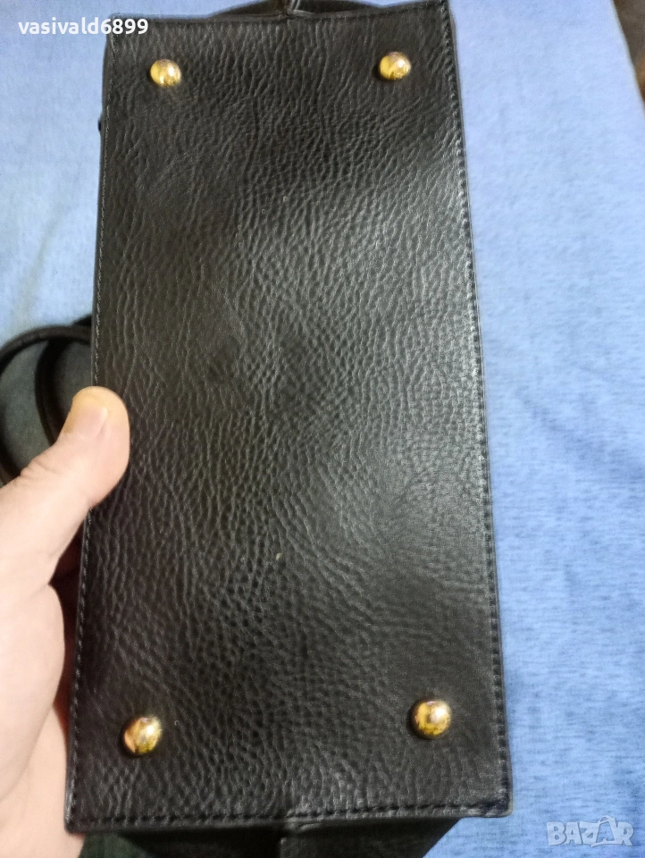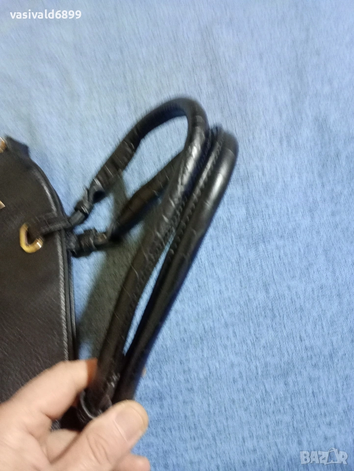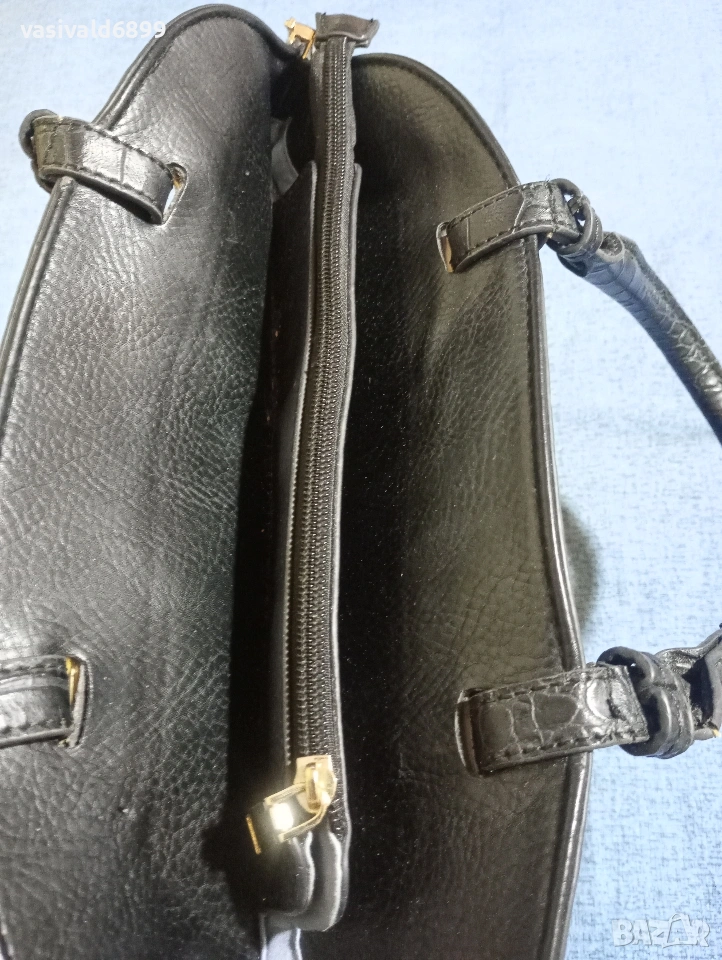 Черна дамска кожена чанта с размери 27х30 см. Цена: 9 EUR.