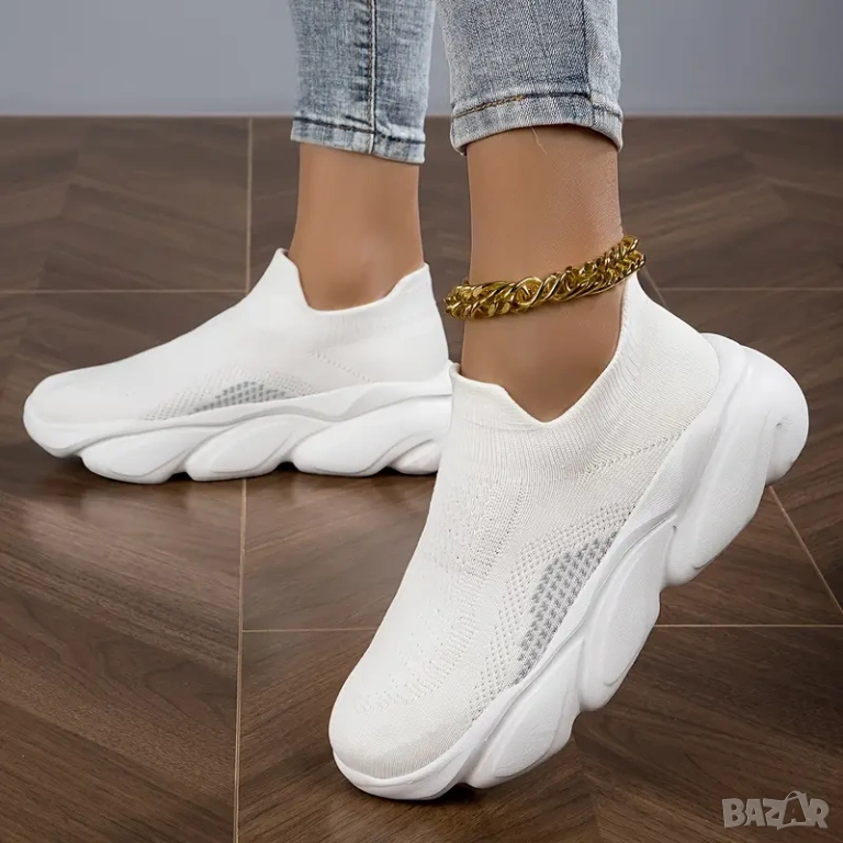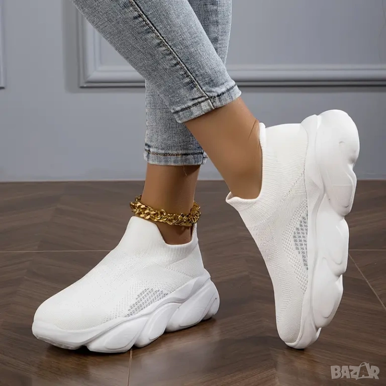 Бели дамски маратонки. Номер 36, дължина на стелката 22,5 см. Много леки и удобни. Нови.
