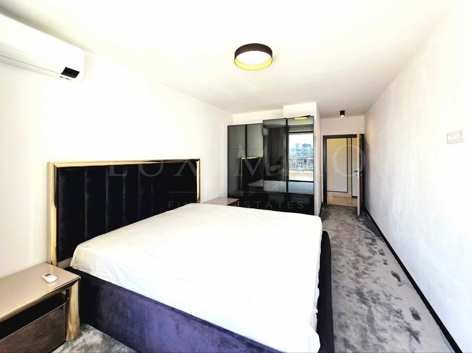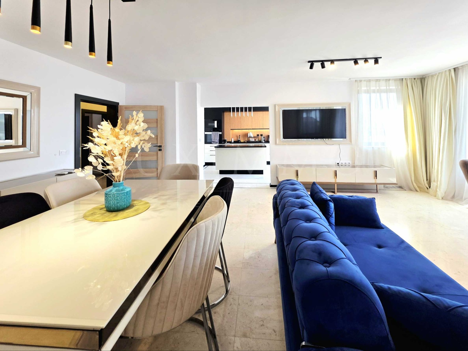 Апартаментът се продава с обзавеждането и оборудването, видни на снимковия материал. Всички мебели и електроуреди са висок клас и с отлично качество. Интериорните врати и каси са от масивно дърво. Баните са завършени с ефектен италиански гранитогрес и санитария 'Roca'и 'Geberit'.