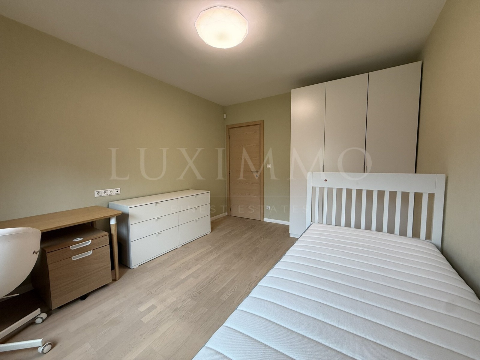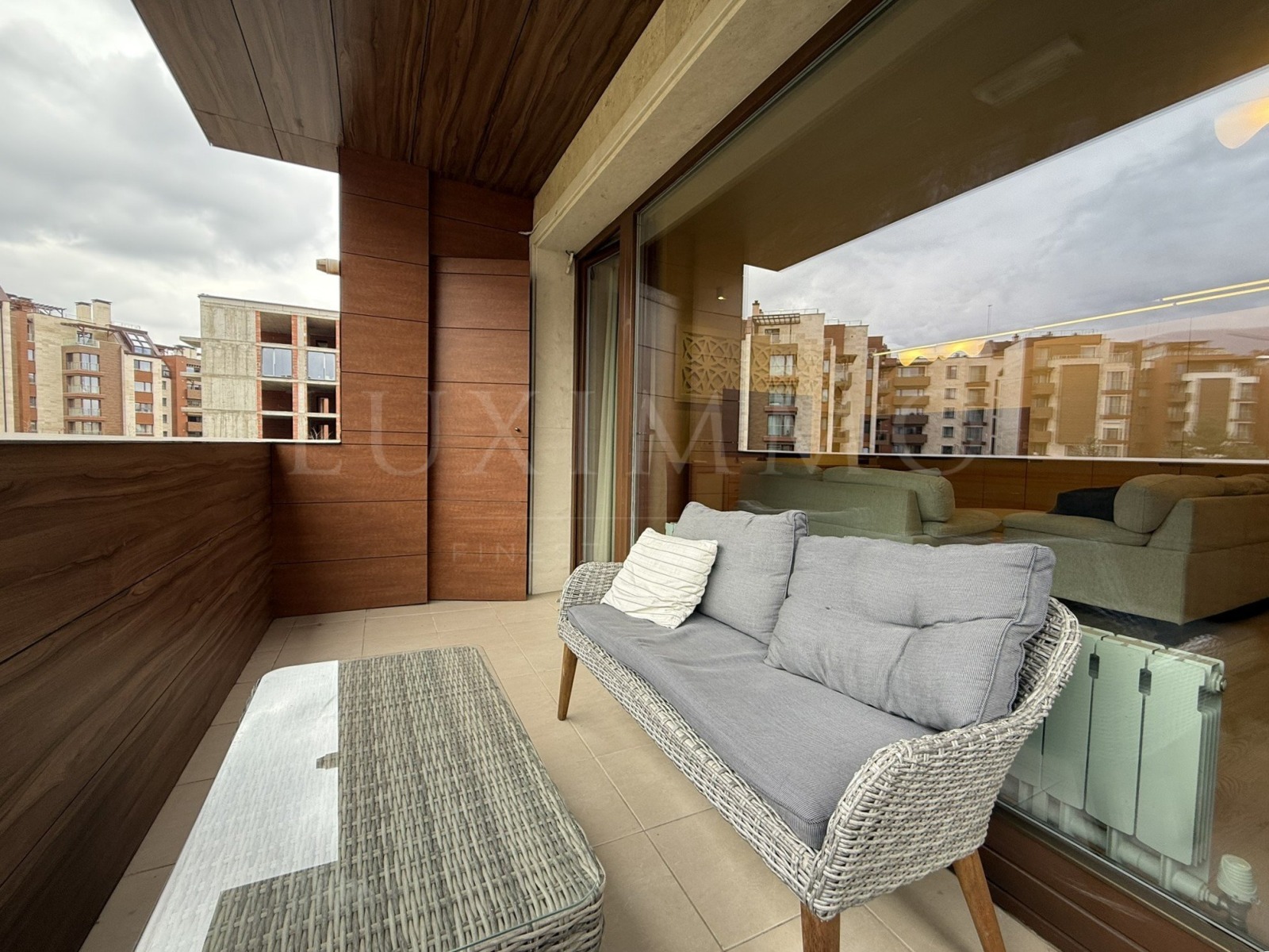 Жилището се отдава напълно обзаведено и оборудвано с висок клас електроуреди, като втората спалня се предлага необзаведена, което дава възможност за индивидуално оформление.