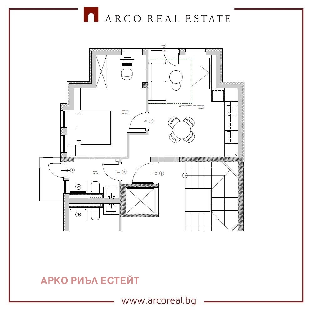 Разпределение: Входно антре, дневна с кухненски бокс, спалня, баня с тоалетна с балконче, тераса.