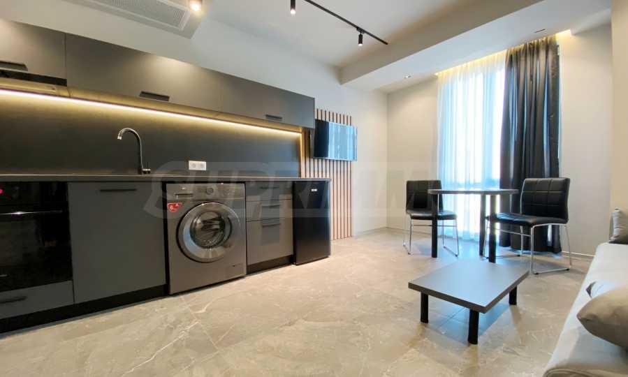 Апартаментът е стилно обзаведен и оборудван с всичко необходимо като нови мебели и ел. уреди в гаранция. Отоплението и охлаждането са решени с нови инверторни климатици с контрол на температурата във всяка стая. Разполага също и с smart телевизори във всяка стая, както и оптичен нет.