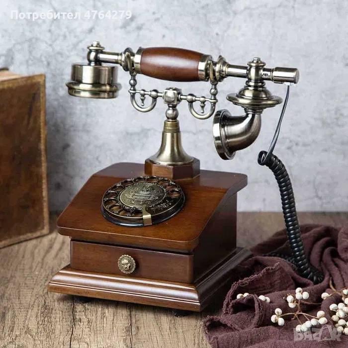 Нов Дървен Ретро Телефон сШайба Работещ Аналогов → Обява 53885059