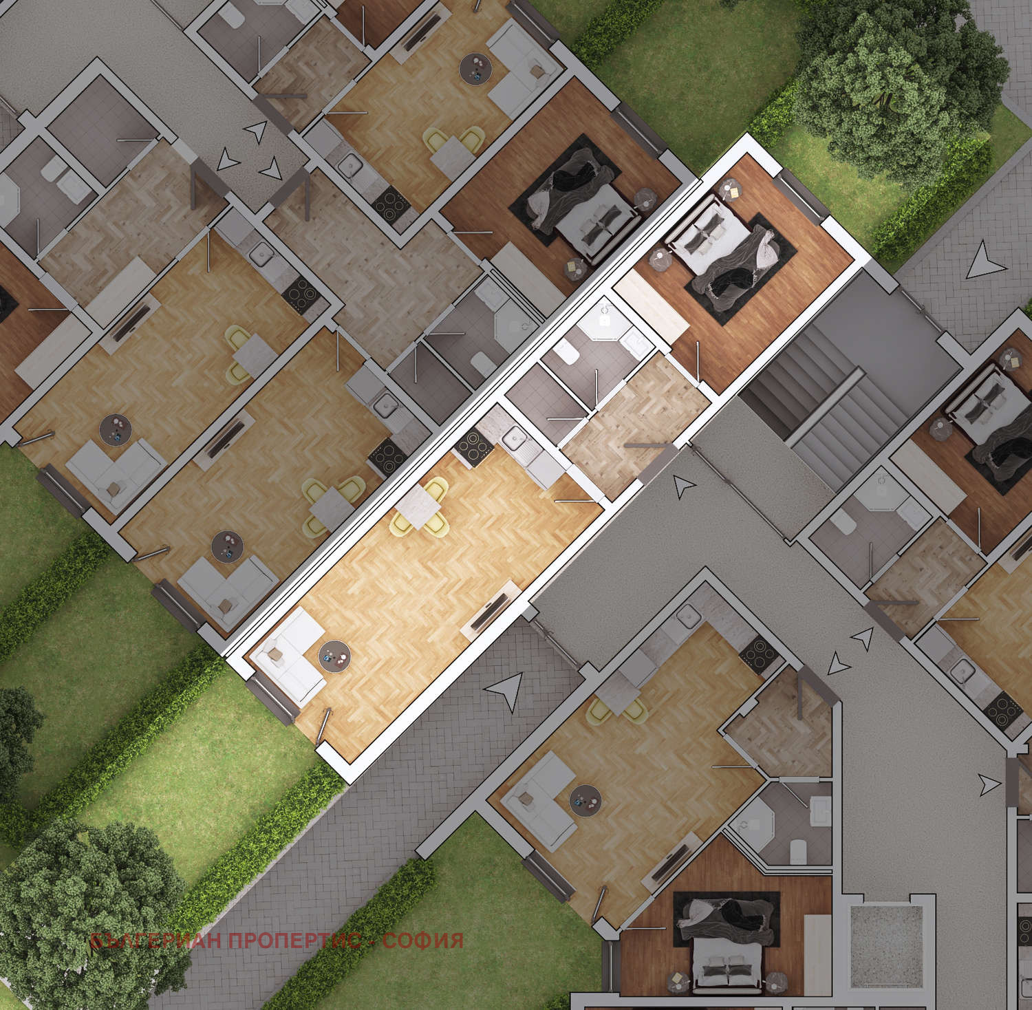 Апартамент V-1 (нетна площ + общи части).
