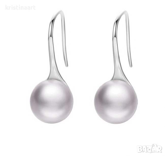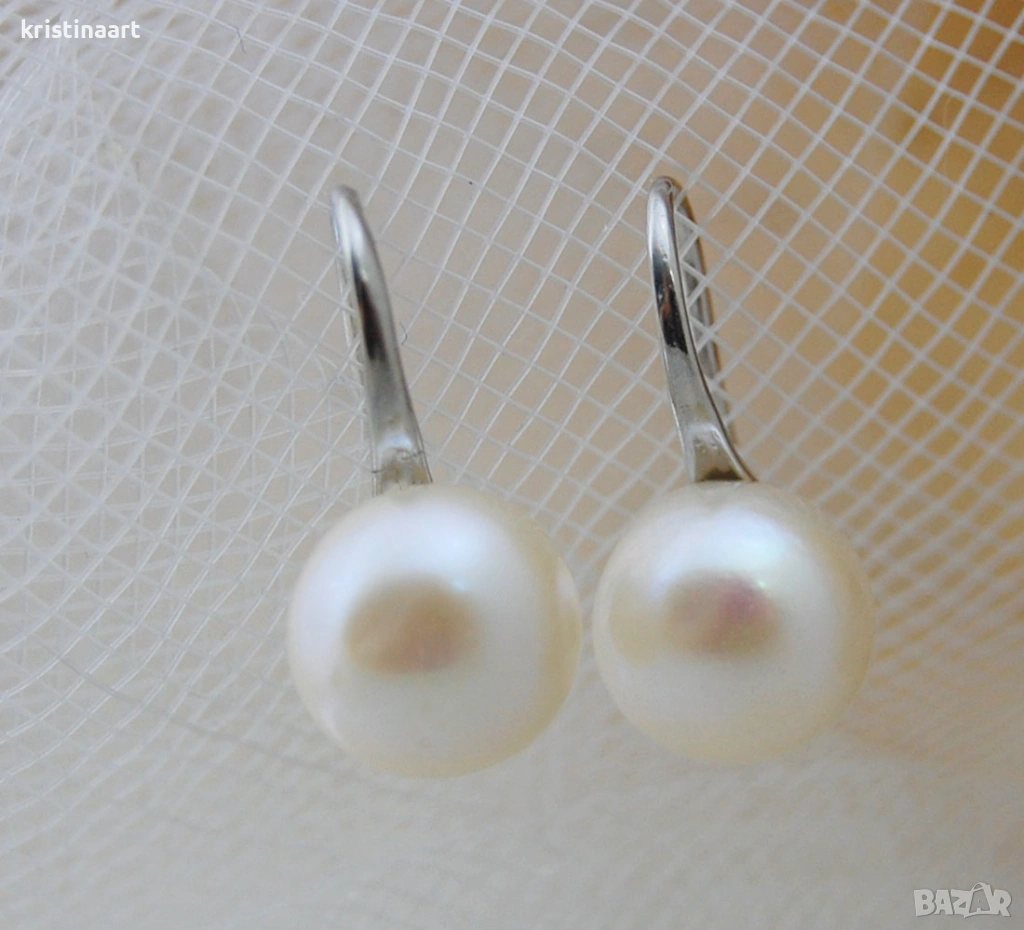 Висящи обеци от естествени бели перли *Хит* 8-9мм → Обява 53885301