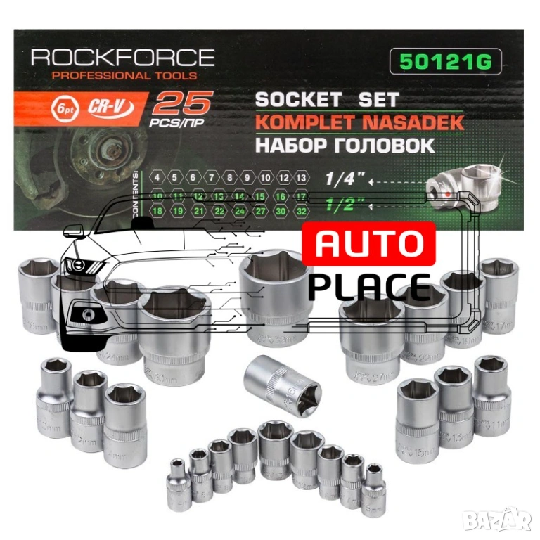 Комплект вложки 25 части 1/4″ и 1/2″ ROCKFORCE