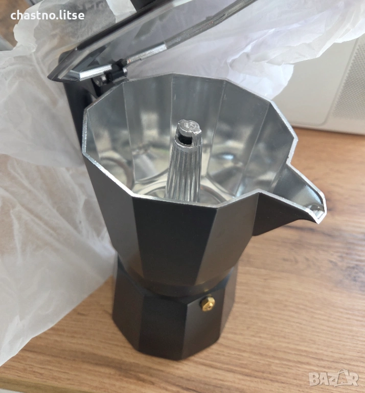 Чисто нова кафеварка за еспресо от висококачествен алуминий, черна, разопакована е - видно от снимките. Най-ниска цена на първичния пазар.