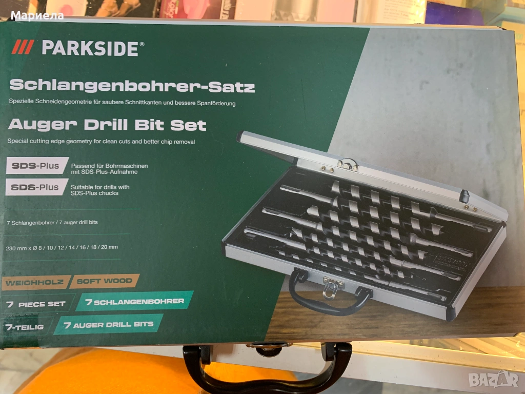 Комплекта съдържа 7 винтови свредла за мека дървесина .