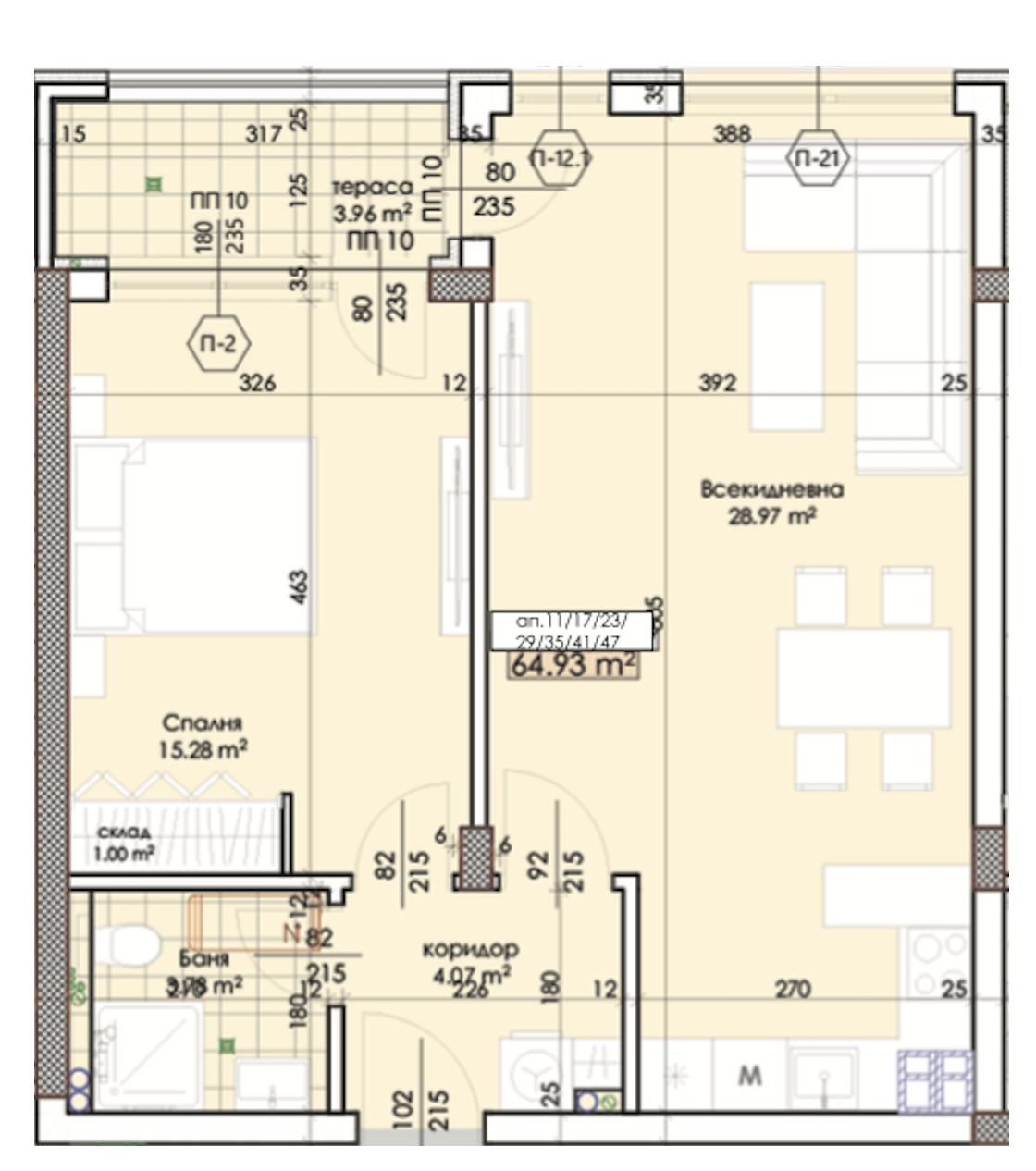 ➡Имотът се състои от антре, баня с тоалетна, спалня, просторна дневна с кухня и трапезария, тераса и е с обща площ от 76,68 кв.м.