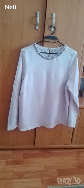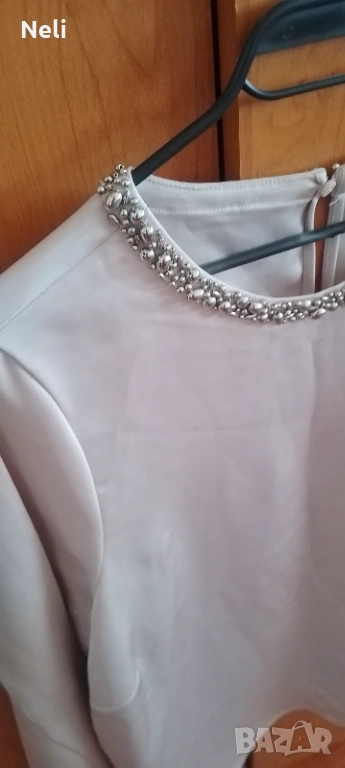 Красива блузка с камъчета на яката, мека материя,без забележки