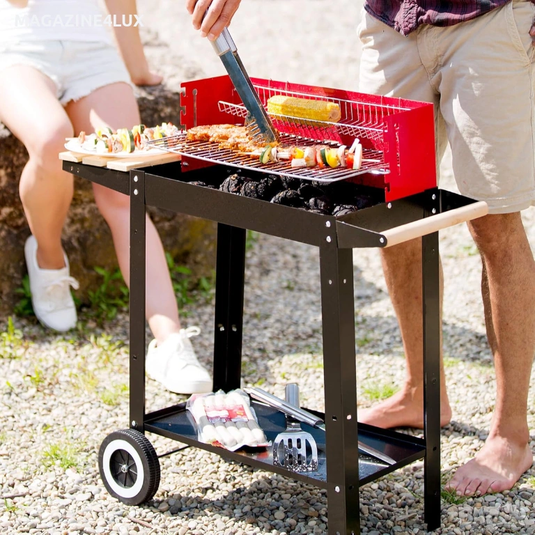 Градинско барбекю на колела от емайлирана стомана с 4 степени на нагряване + подарък комплект от 3 п → Обява 53885664