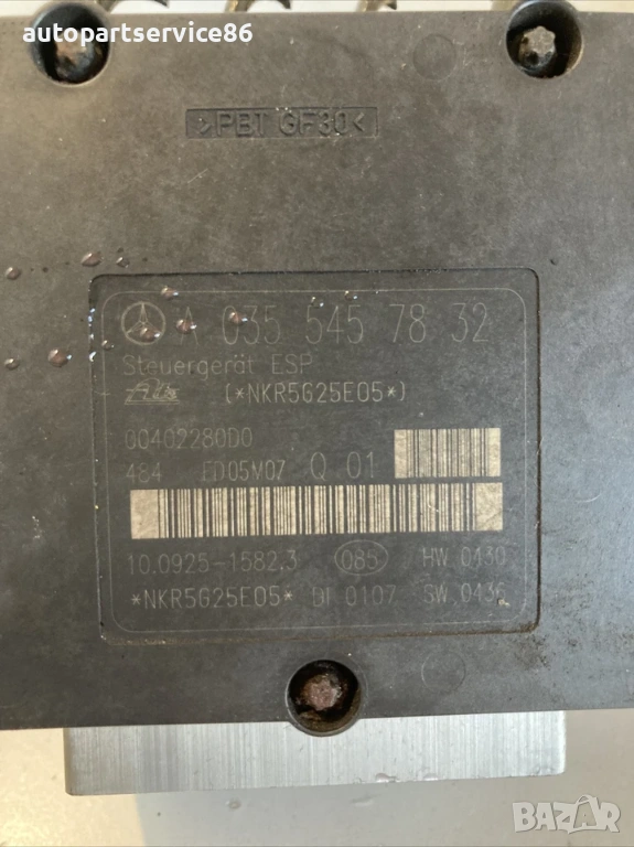 ABS помпа за Mercedes CLK W209 2.0K, дясно управление (2005) A0054317412, снимка 1 - Части - 53885880 ABS помпа за Mercedes CLK W209 2.0K, дясно управление (2005) A0054317412, снимка 2 - Части - 53885880 ABS помпа за Mercedes CLK W209 2.0K, дясно управление (2005) A0054317412, снимка 3 - Части - 53885880 1/3
