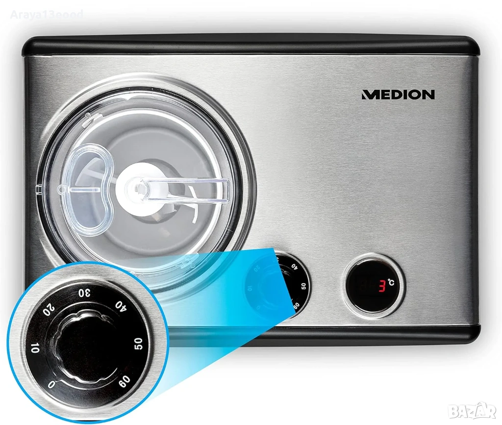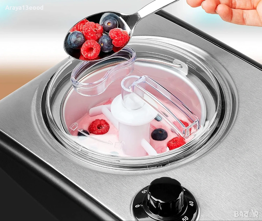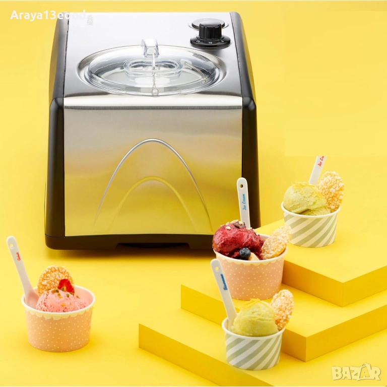 Машина за сладолед с вграден компресор 1,5 литра, контейнер за лед от алуминий, температурен диапазон от -18 ° C и 35 ° C, и таймер