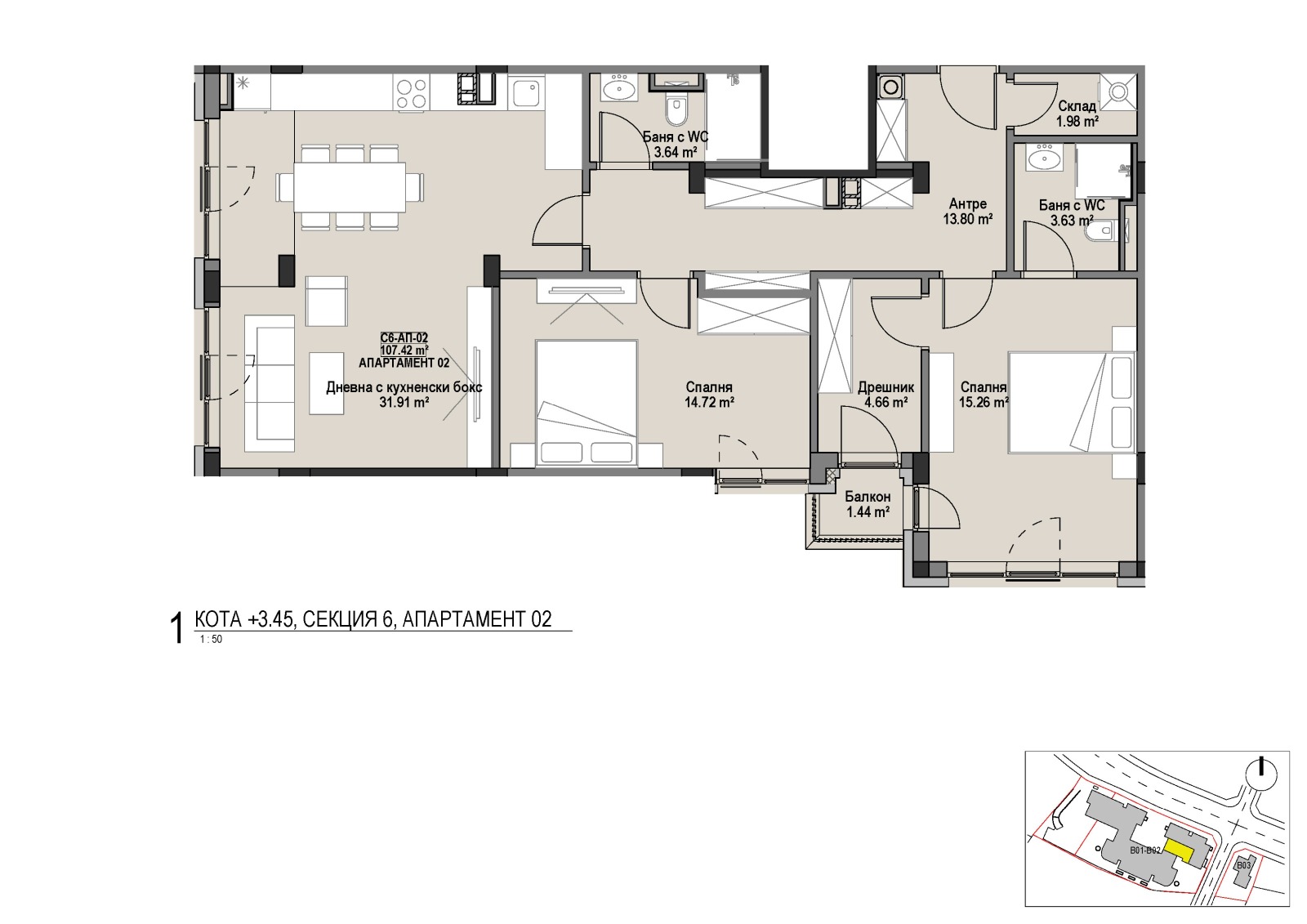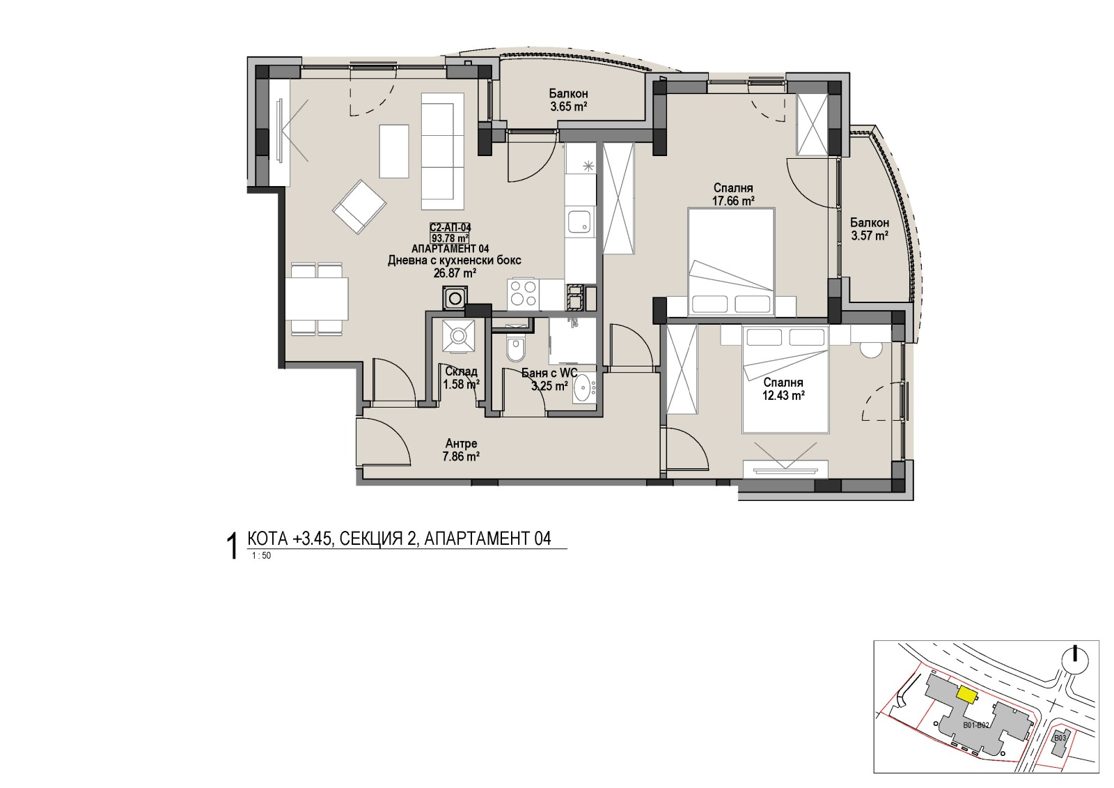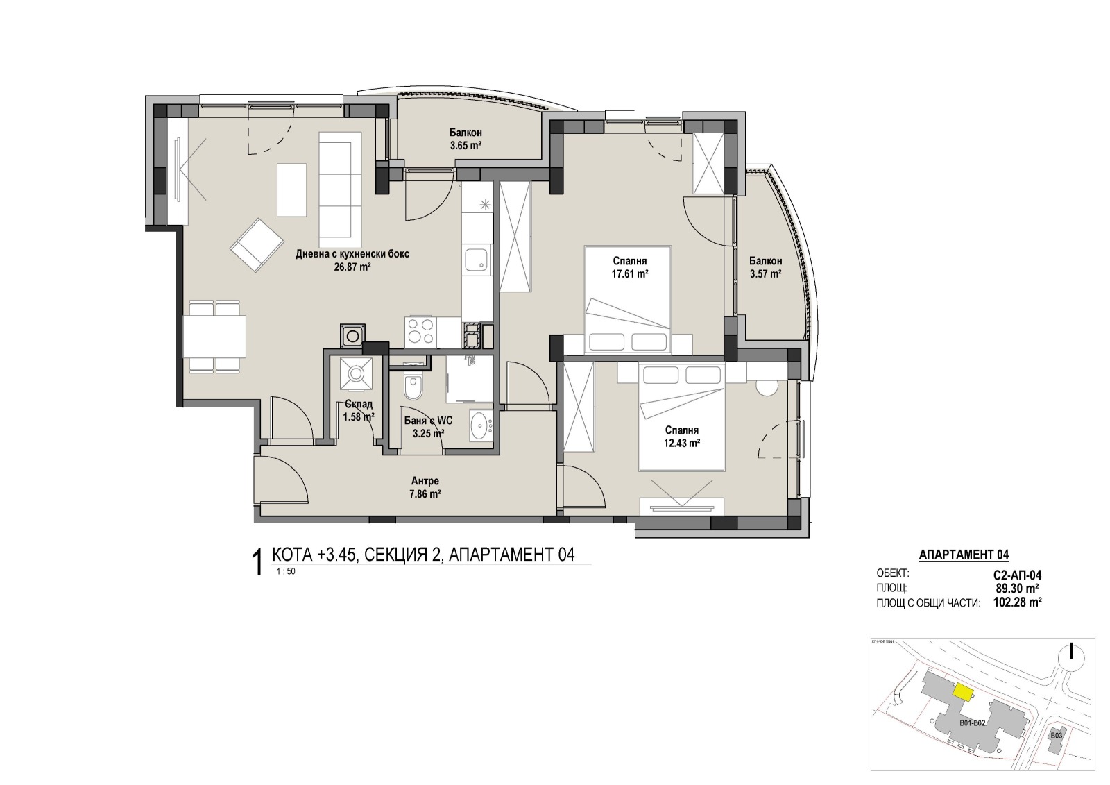 - Складови помещения включени в цената: от 3,29 кв.м до 11,26 кв.м застроена площ