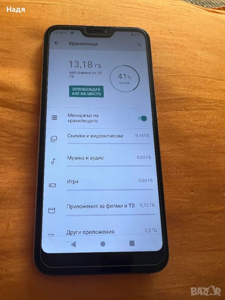 Поставен е стъклен протектор на дисплея.