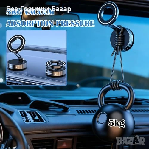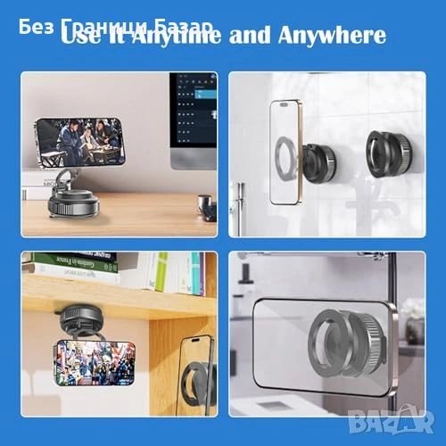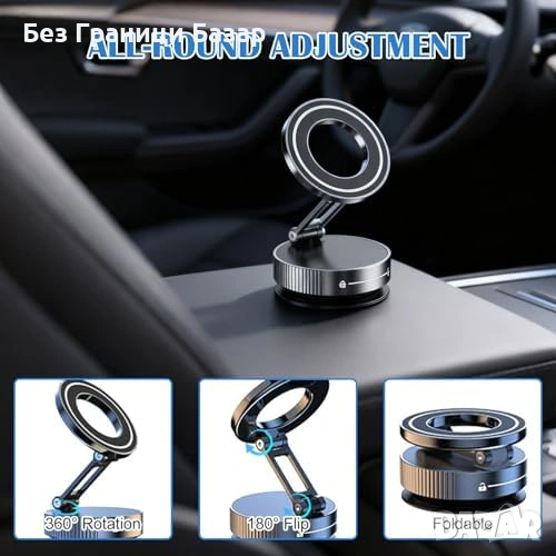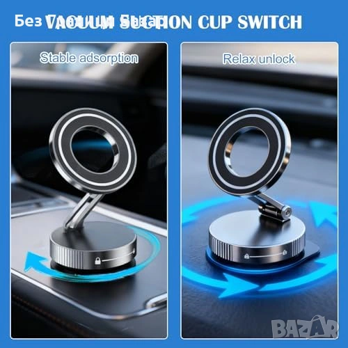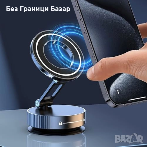 Магнитна стойка за телефон с вакуумно захващане без нужда от подложка