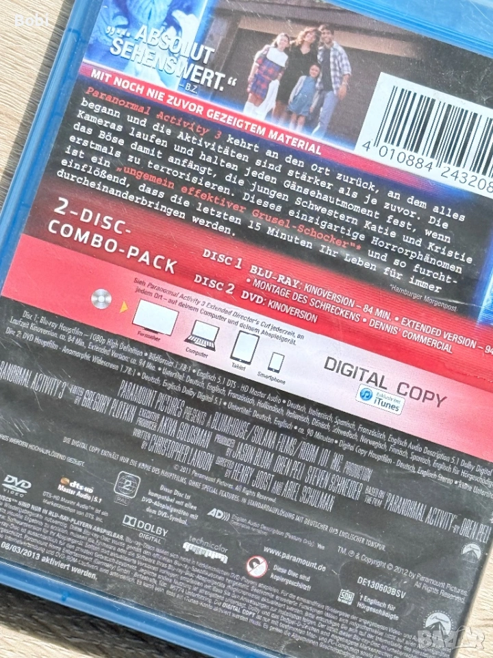 Paranormal Activity 3 (Blu-ray + DVD + Digital Copy) – Extended Director’s Cut, снимка 1 - Blu-Ray филми - 53886673 Paranormal Activity 3 (Blu-ray + DVD + Digital Copy) – Extended Director’s Cut, снимка 2 - Blu-Ray филми - 53886673 Paranormal Activity 3 (Blu-ray + DVD + Digital Copy) – Extended Director’s Cut, снимка 3 - Blu-Ray филми - 53886673 Paranormal Activity 3 (Blu-ray + DVD + Digital Copy) – Extended Director’s Cut, снимка 4 - Blu-Ray филми - 53886673 Paranormal Activity 3 (Blu-ray + DVD + Digital Copy) – Extended Director’s Cut, снимка 5 - Blu-Ray филми - 53886673 1/5